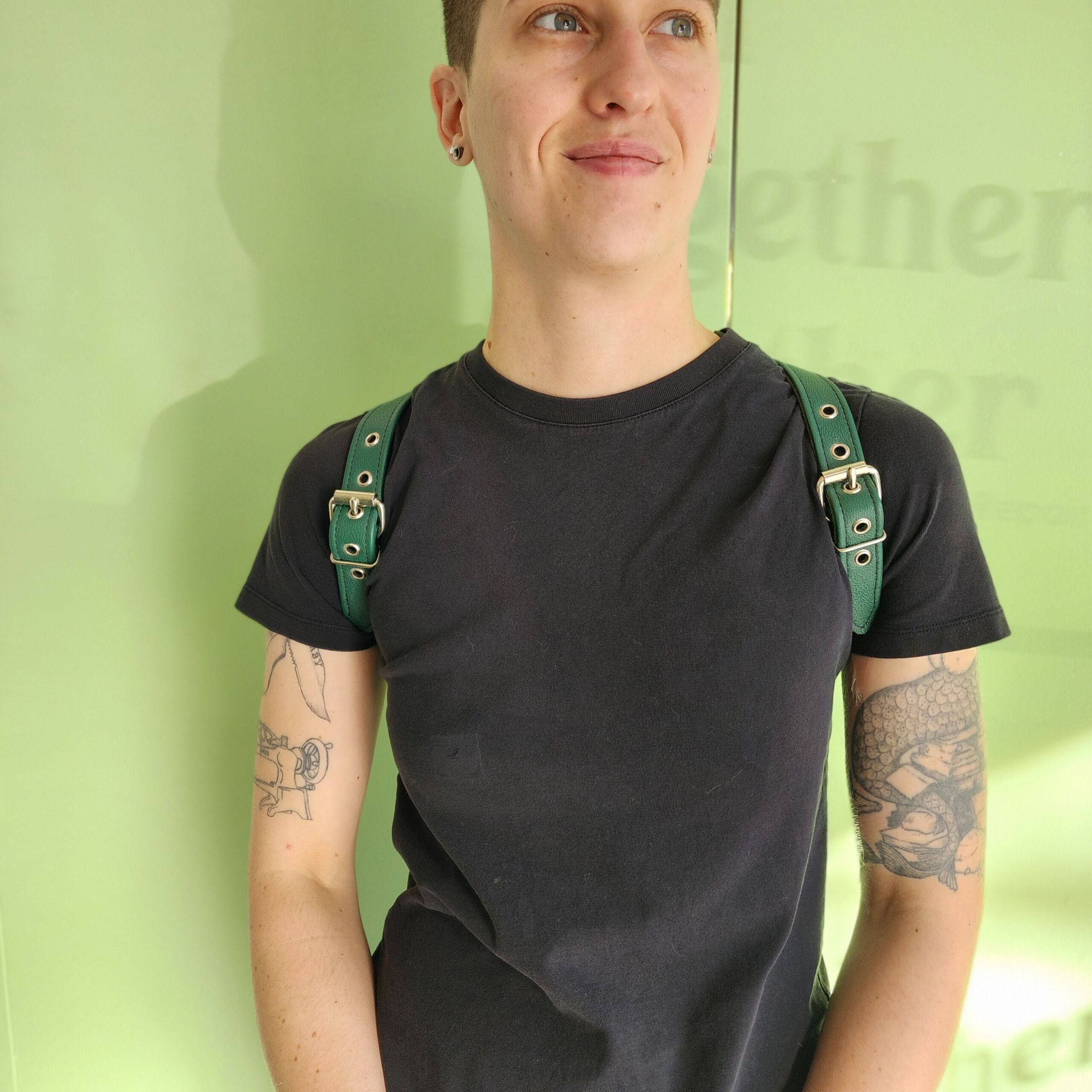 Most of our designs stem from Ariss’ work recounting Leatherdyke history and a commitment to leatherwork that aids everybody – including those with disabilities- in feeling held. Walk-in to our East Vancouver studio to talk about altering your existing leathers, repairing broken items, or making something new and affirming.