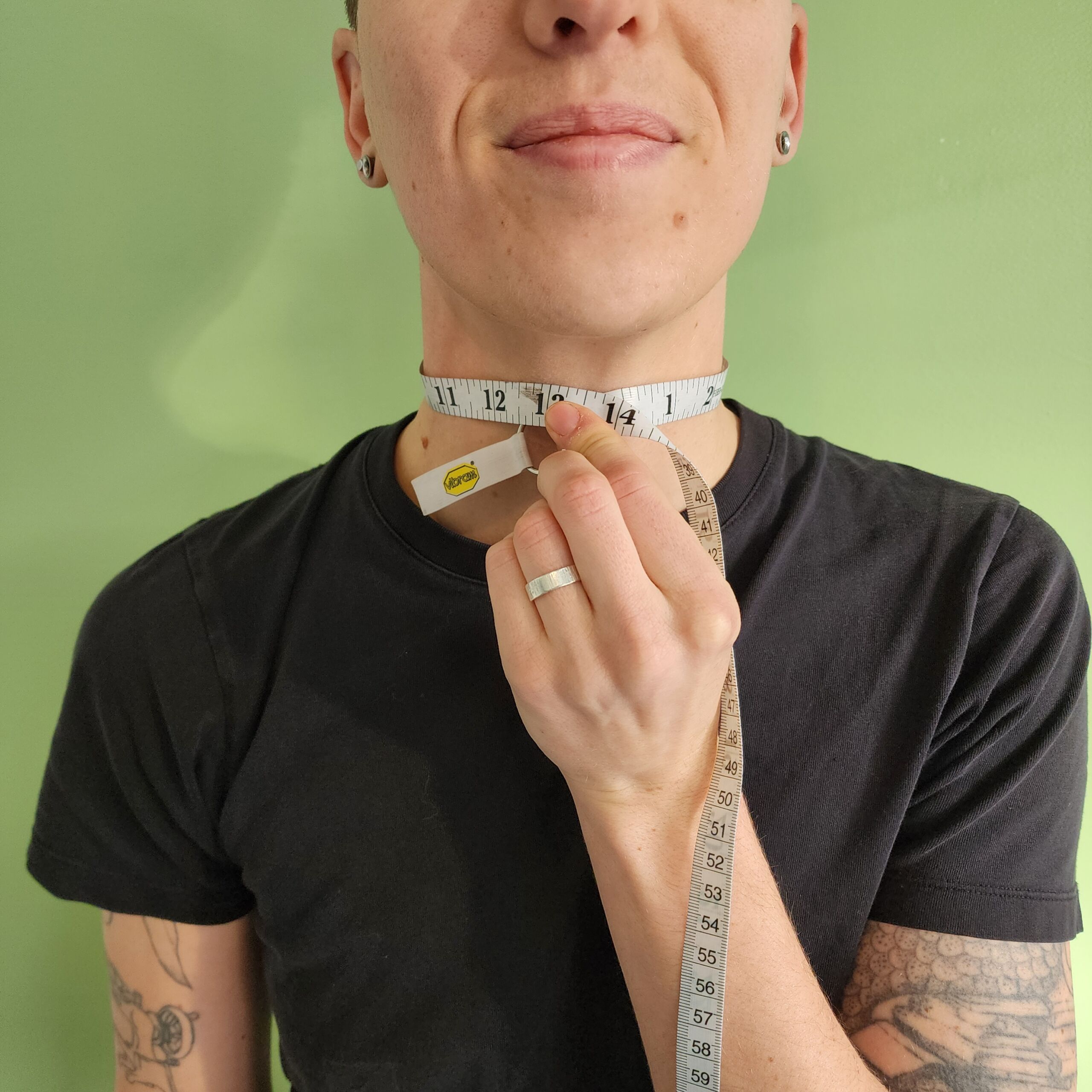 - The neck measurement (place a fabric measuring tape 360 around the neck)
