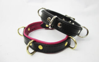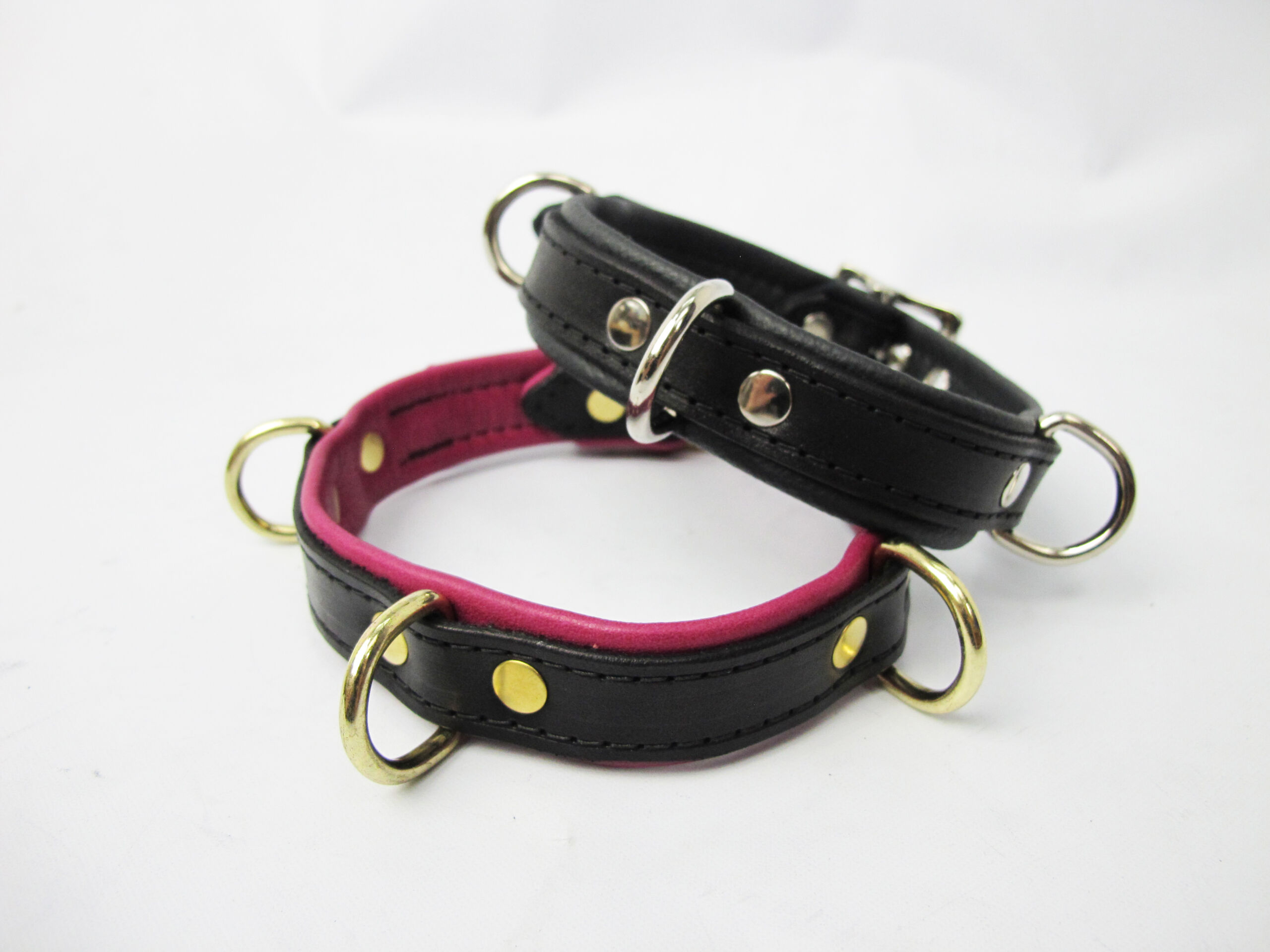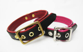 Brass (nickel-free) or silver hardware. Choose between a single or triple d-ring option, and any colors you please. We can use a thread color that matches your leather choice – or not! View a full break-down of our leather types here.