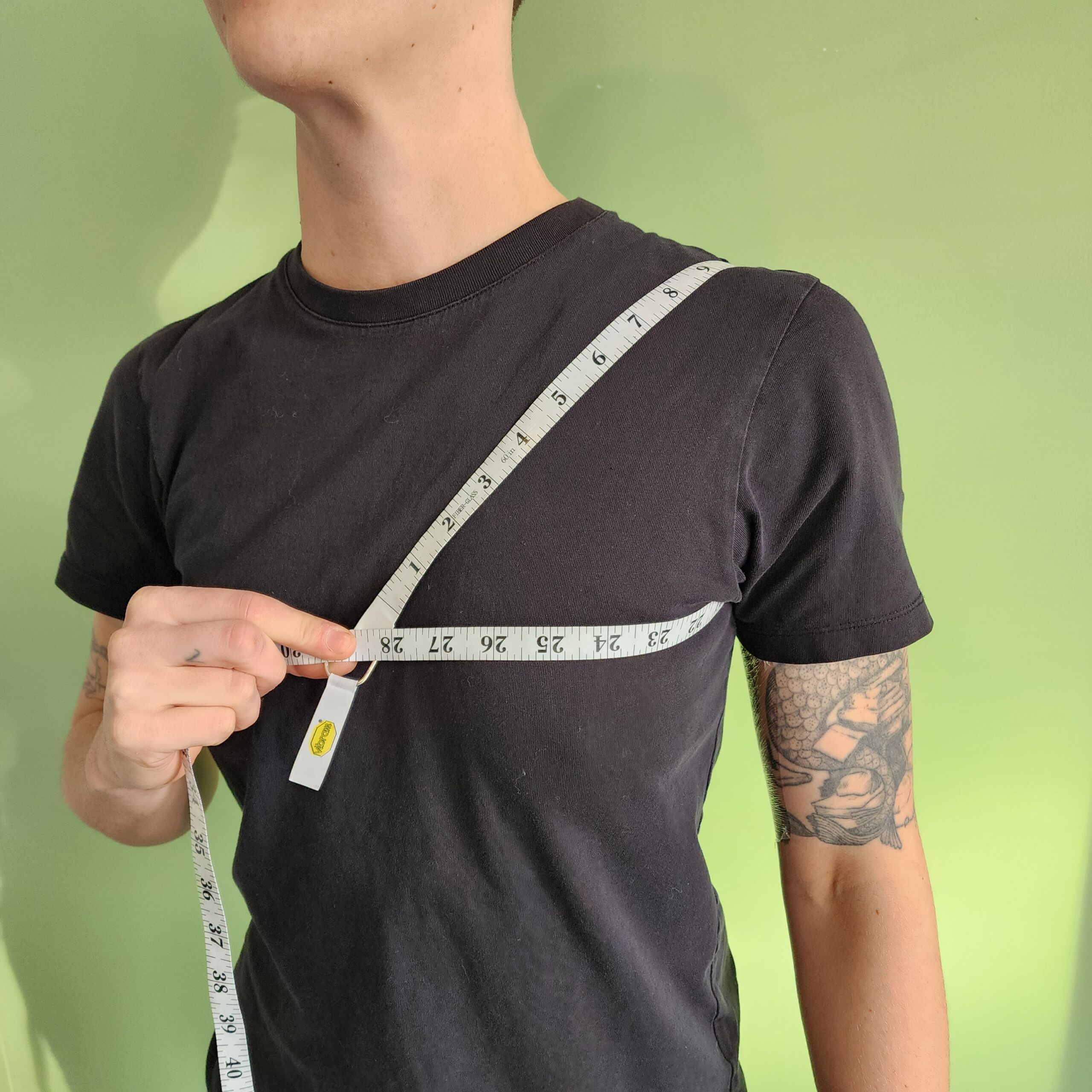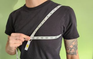 - Half of the figure 8 (easiest done by holding a fabric measuring tape in the center of your chest, wrapping it over your shoulder and under your armpit, back to the center of your chest).