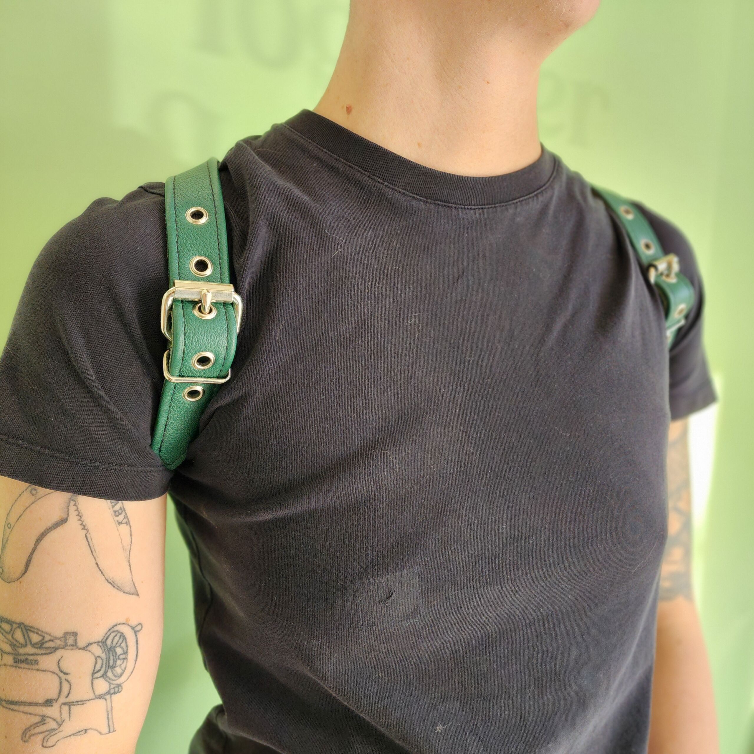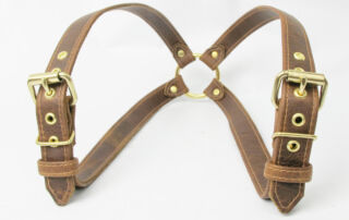 We make these Shoulder Shrug Leather Harness in our studio, like everything else we offer! The shrug can be used as an elegant touch to any outfit, or as a method to help correct posture.