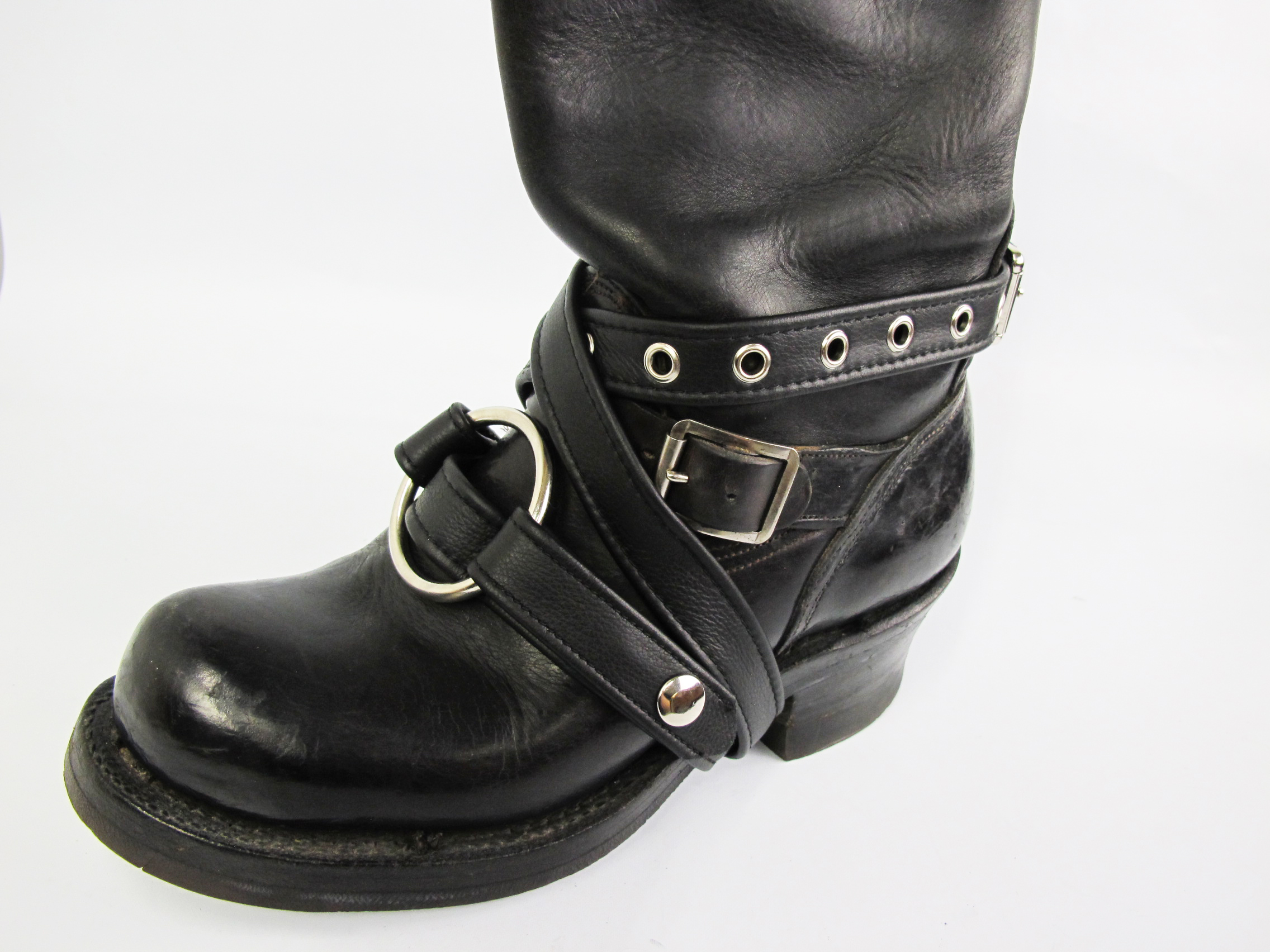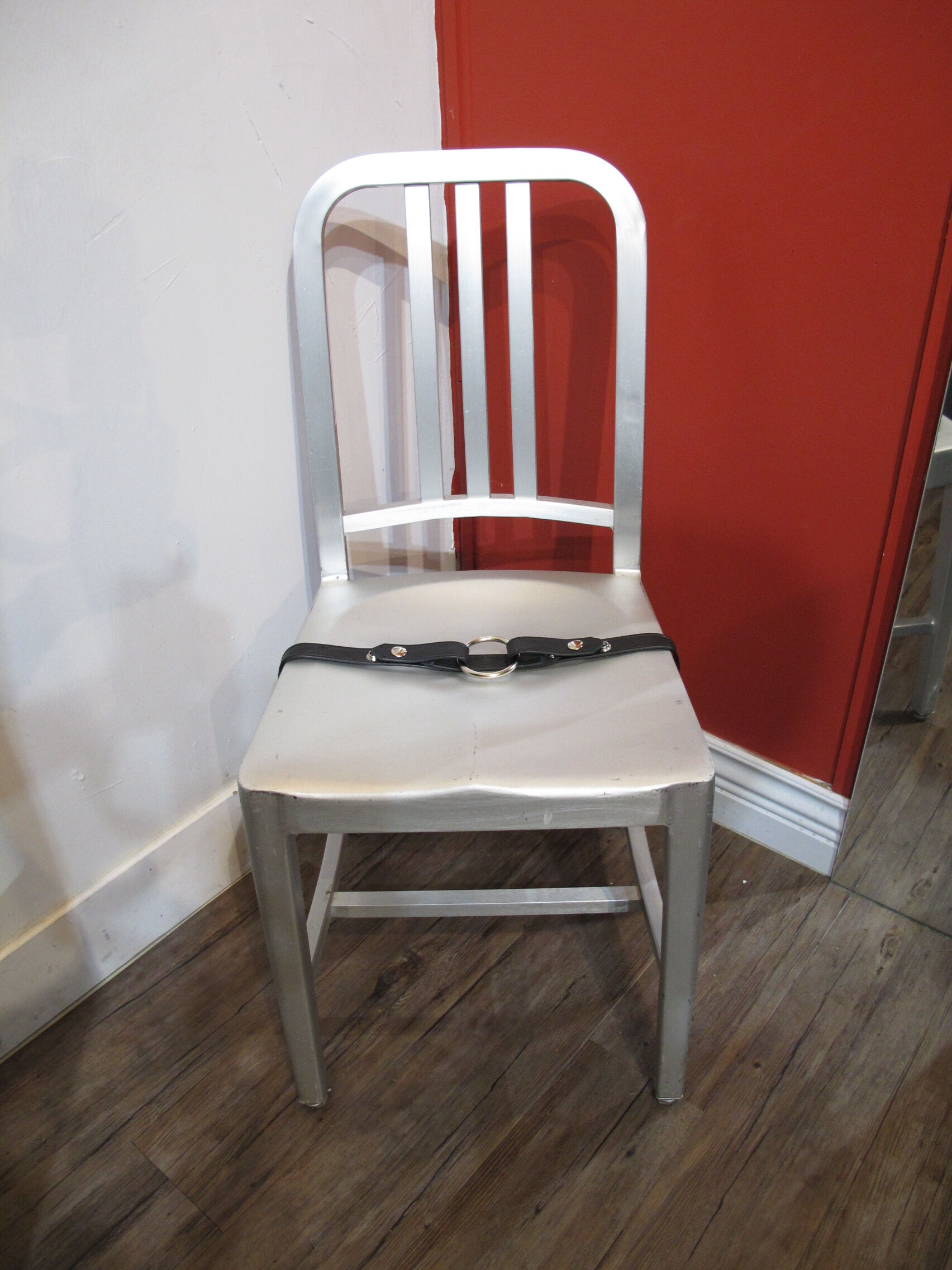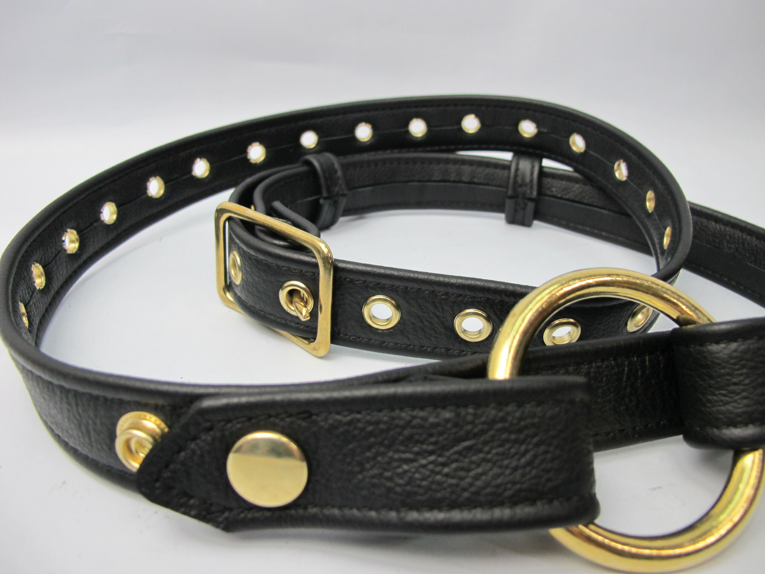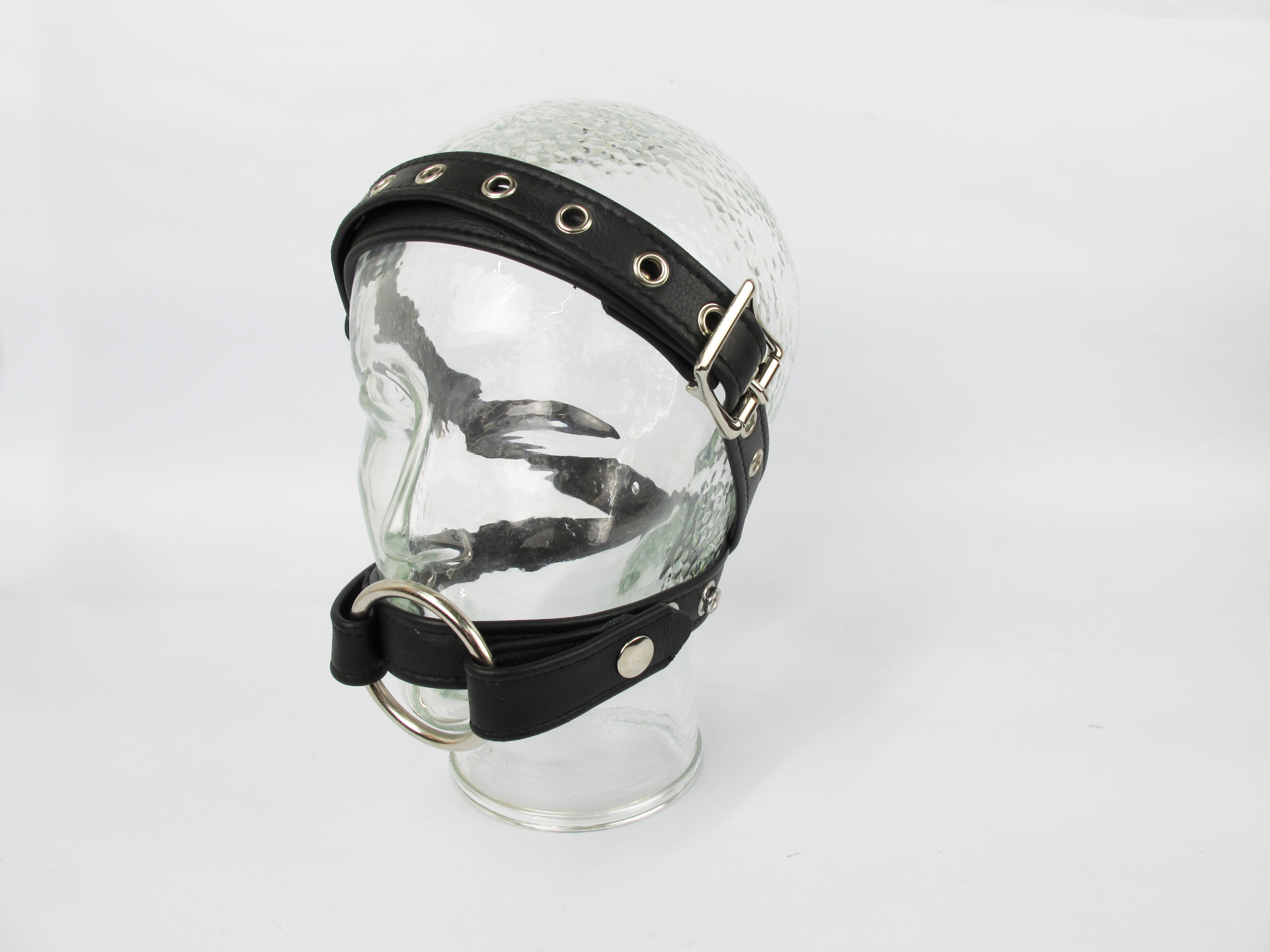 This leather strap-on harness is designed to wrap around literally anything; highlights include boots, thighs, fists, heads, & furniture. The O-ring is interchangeable with different ‘tightness’ settings to allow for different sizes of toys. Plus – the “‘base” layer of leather underneath the O-ring works super well as a handle or bit when used on a fist or head!