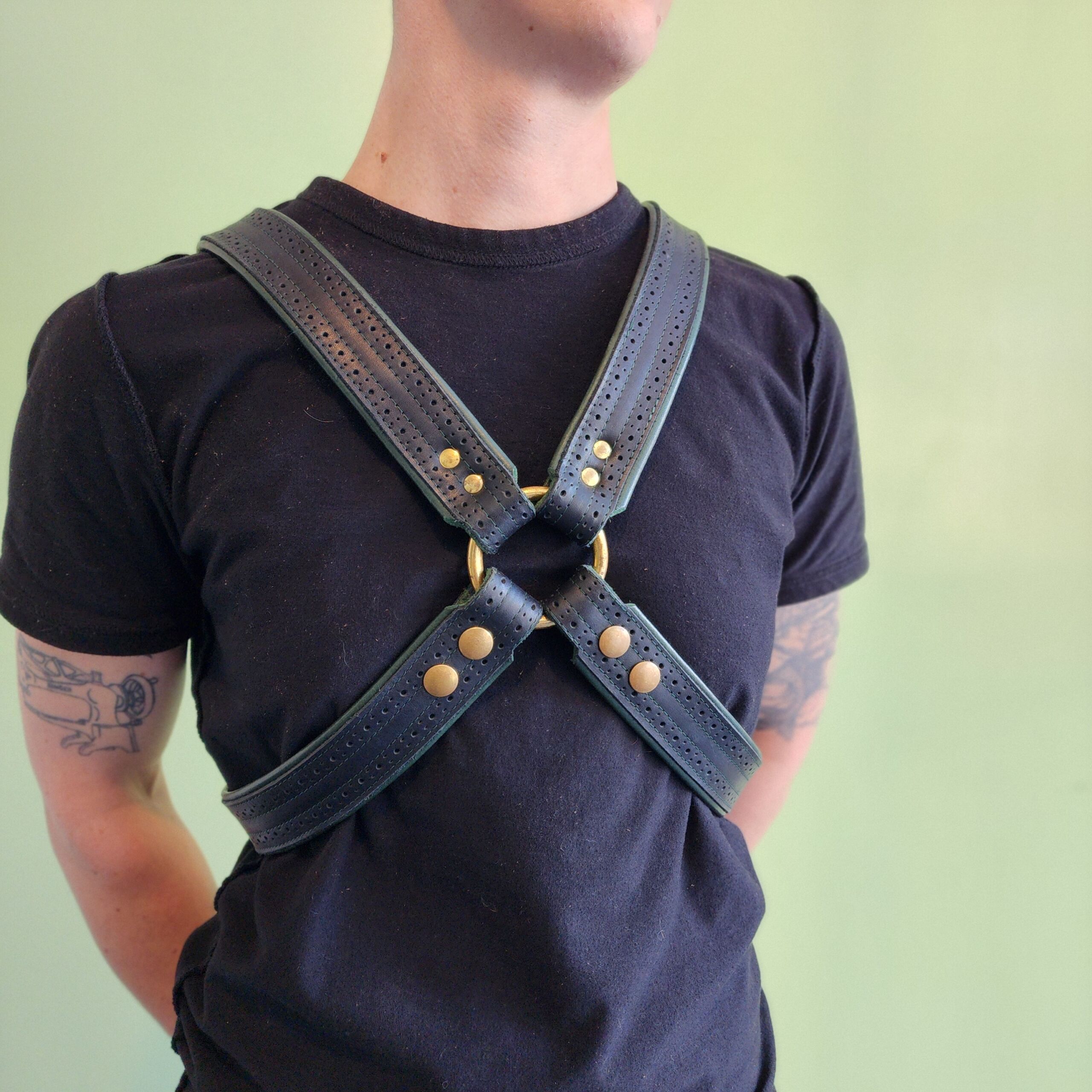 Broguing is classic leather embellishment stemming from Irish/Scottish workmen who used the holes to allow boots to dry quicker. In time, men’s high-end dress shoes (Oxfords/Derbys) co-opted the detail-oriented work to signify class and status. Ariss is taking it back as a nod to the working class Butches and Transmen who paved our path.